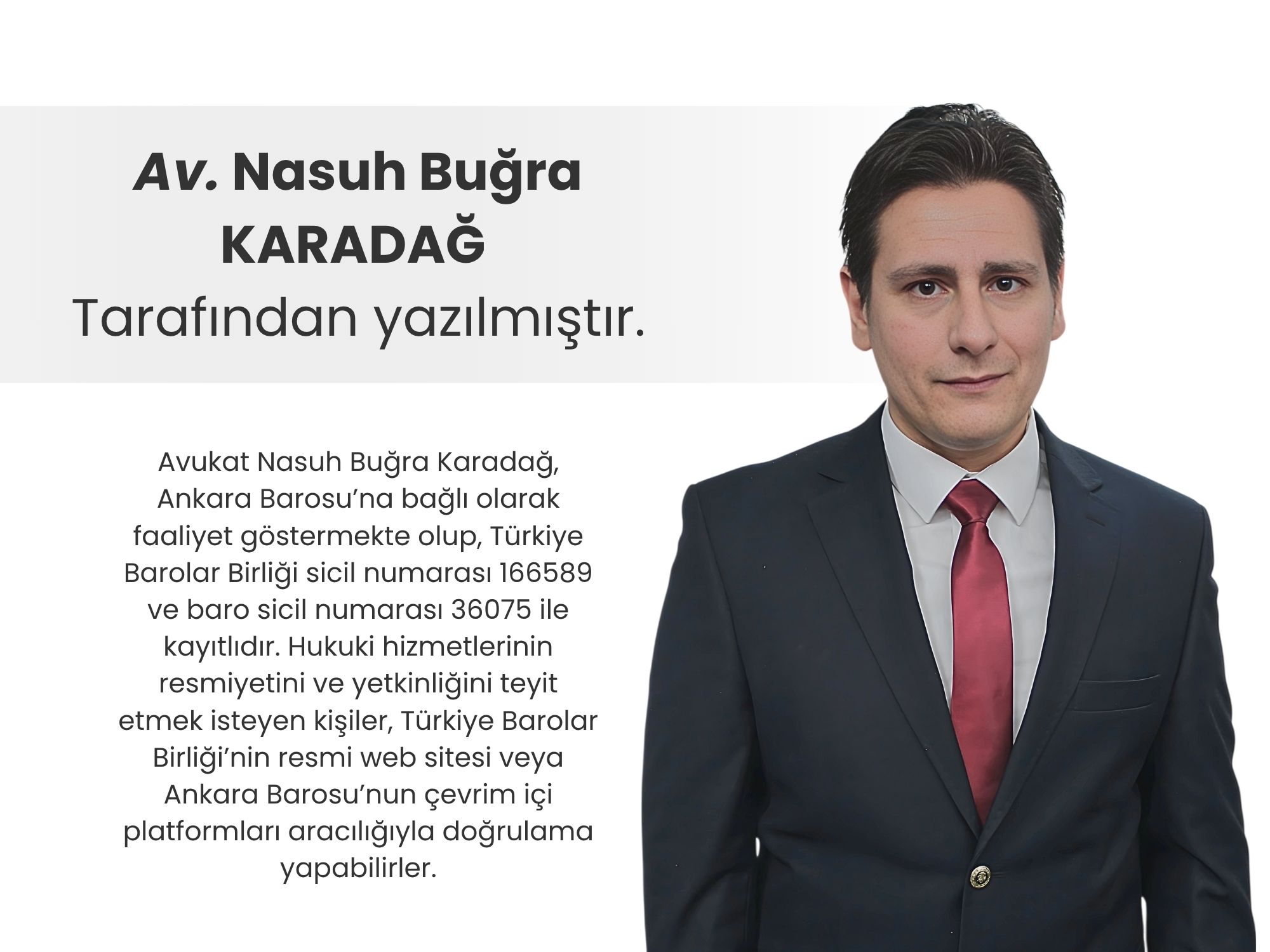 Bu makale, Karadağ Avukatlık Ofisi‘nin kurucusu Av. Nasuh Buğra Karadağ tarafından tarafından özenle hazırlanmıştır.